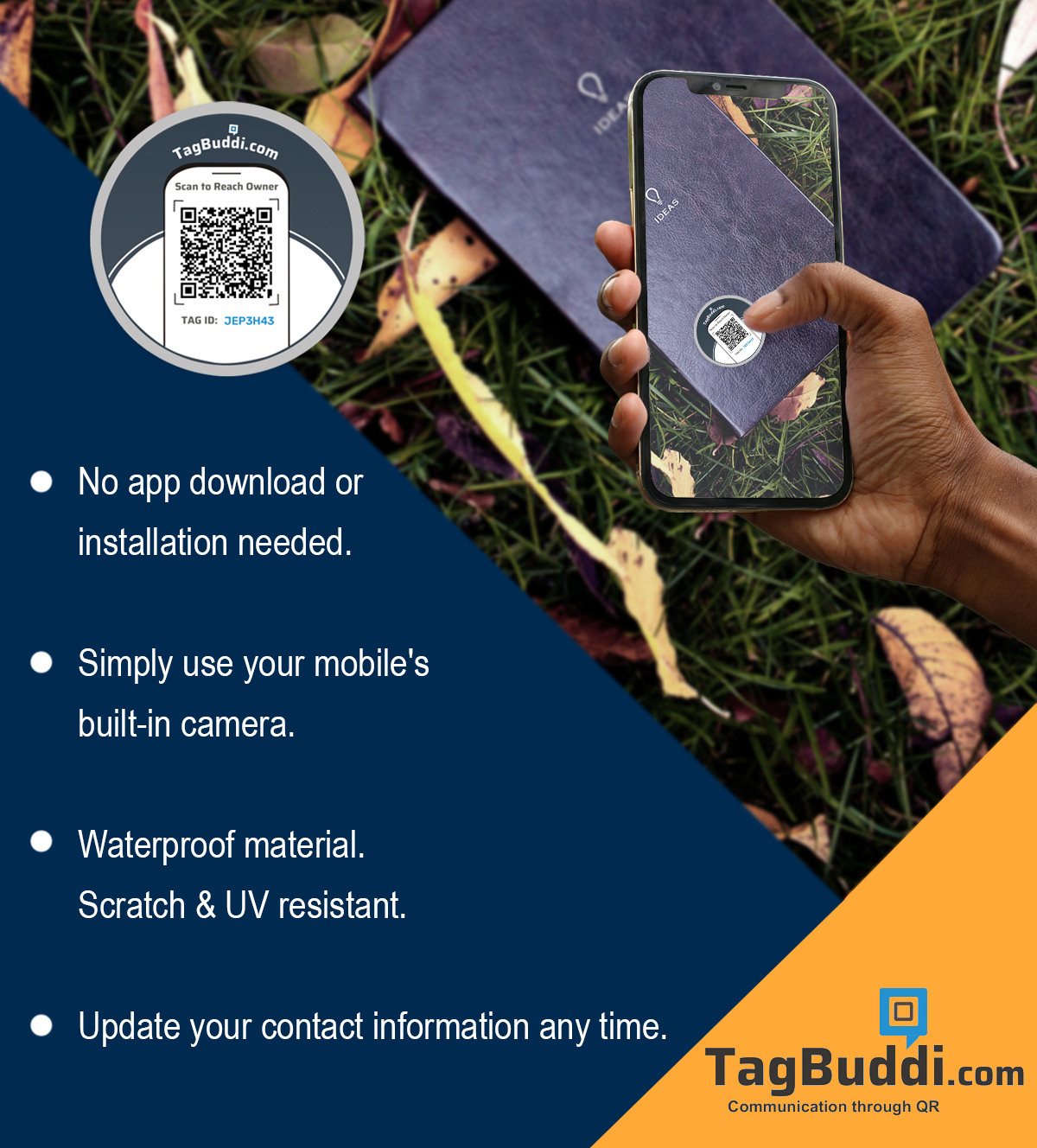 When someone scans your QR code, they’re directed to a secure TagBuddi page where the finder can see your contact details and reach out to you.